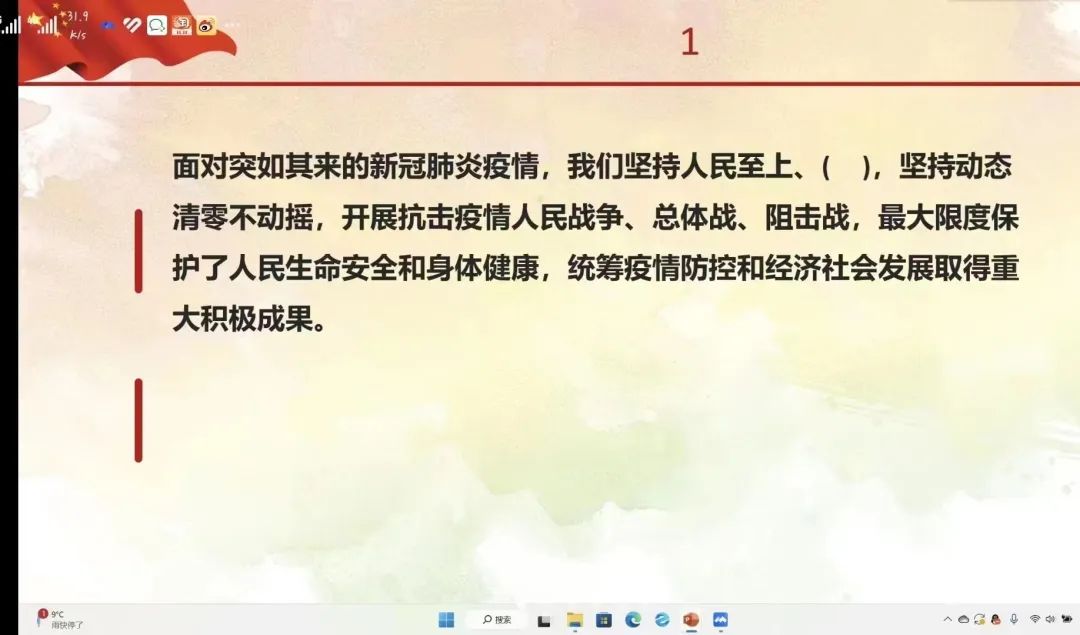 2203班团支书与同学们一起回顾了十九大以来中国的飞速发展,同时2203团支部以宿舍为单位,组织支部成员拍摄“深情表白祖国”视频,用视频抒发对祖国母亲的深厚情感,用实际行动践行党的二十大精神。