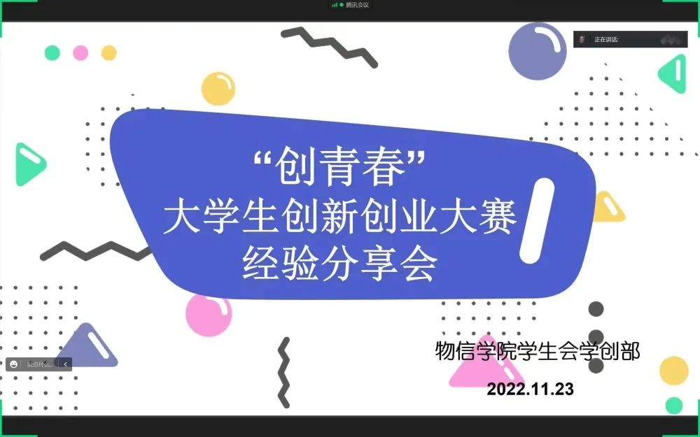 为提高公司员工的创新创业意识,增强同学们对创新创业类竞赛的了解,11月23日晚,院员工会学创部以线上宣讲的形式举办了“创青春”老员工创新创业大赛经验交流会。本次交流会邀请到获得山西省2022年“创青春”创新创业大赛校级三等奖项目负责人任静和2022年“创青春”创新创业大赛校级优秀奖项目成员孙钰惠为大家进行交流分享。