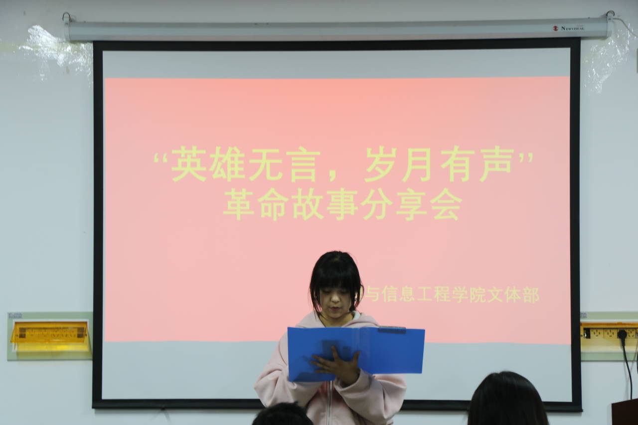 为了让同学们深刻领会革命先烈的英勇奉献精神,院员工会文体部于4月4日晚在南区实验楼S202举办“英雄无言,岁月有声”革命故事分享会。本次分享会由文体部徐弈鹏主持。