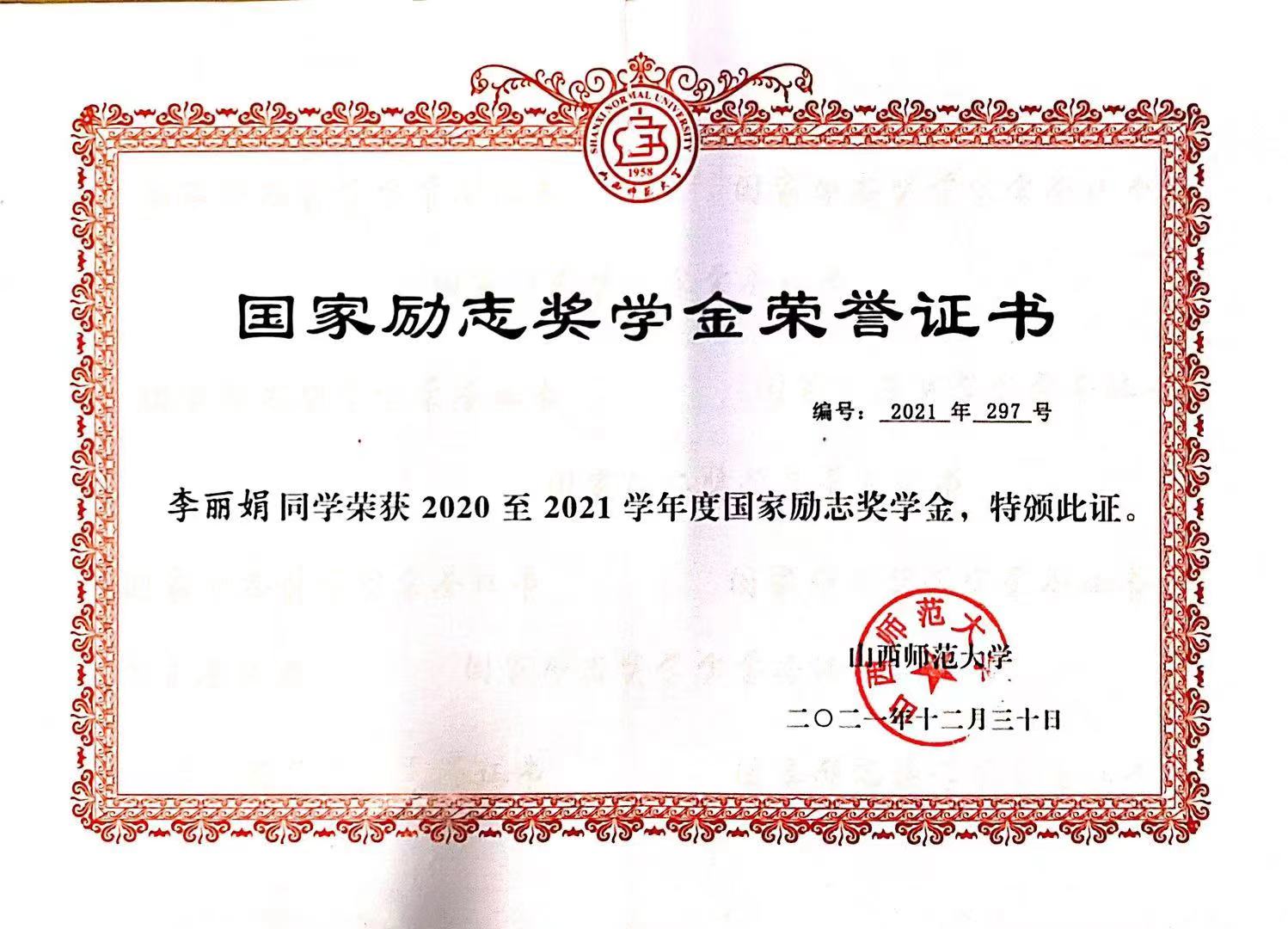 2020-2021学年国家励志奖学金