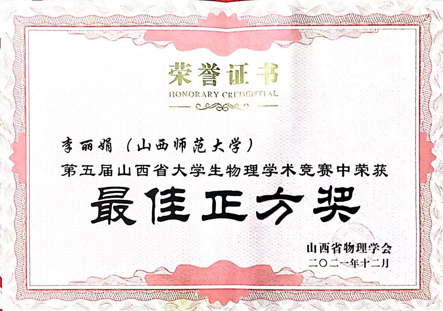 2021.11 第五届山西省老员工物理学术竞赛最佳正方奖