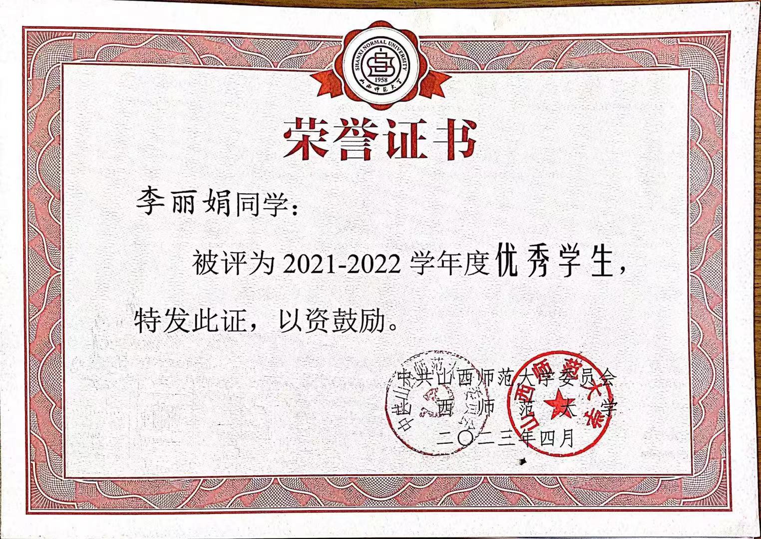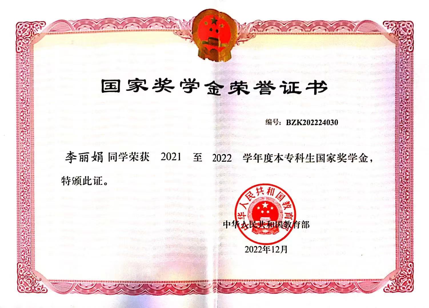 2021-2022学年国家奖学金