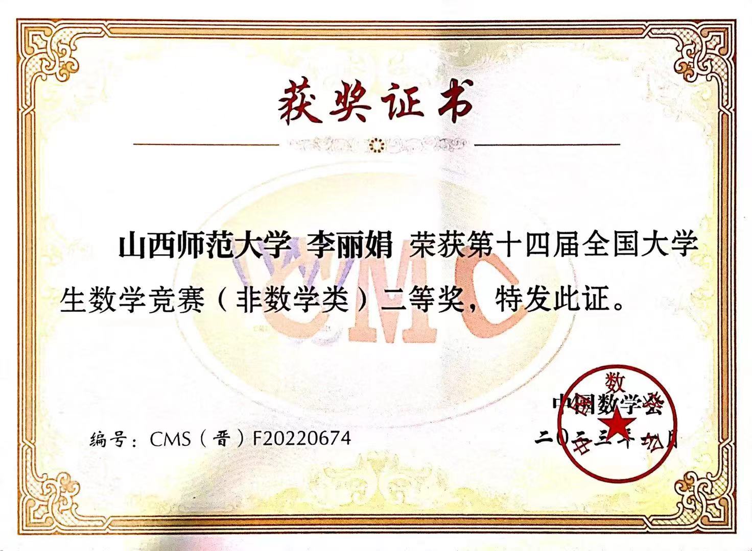 2023.01 第十四届全国老员工数学竞赛(非数学类)二等奖
