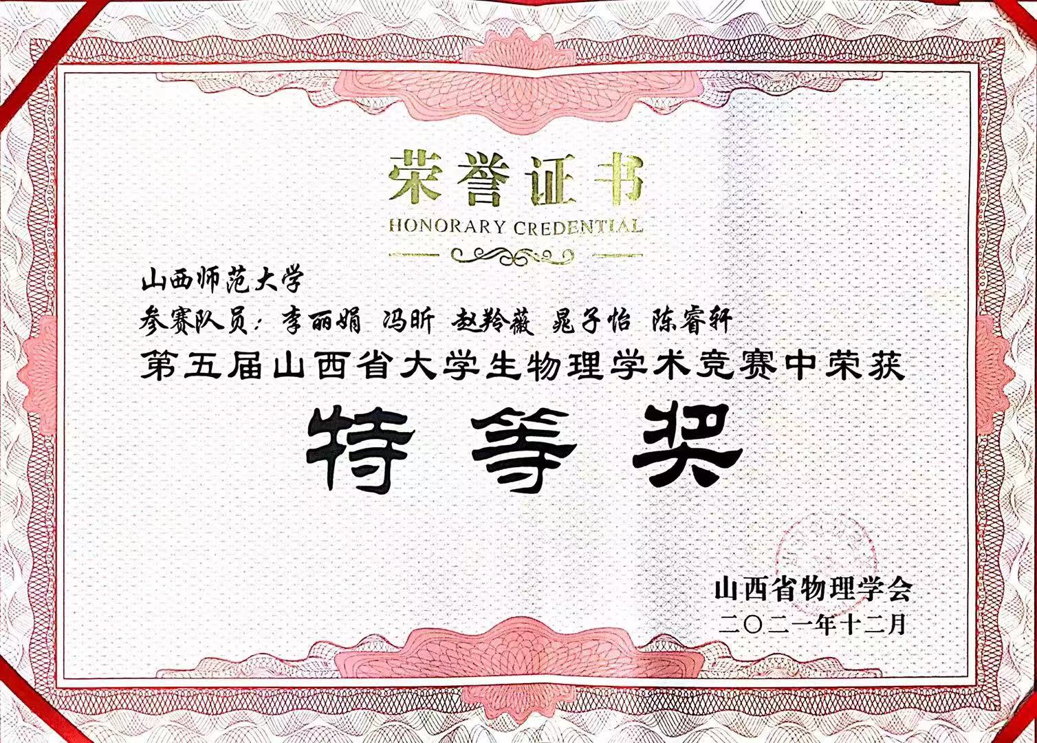 2021.11 第五届山西省老员工物理学术竞赛省级特等奖(队长)