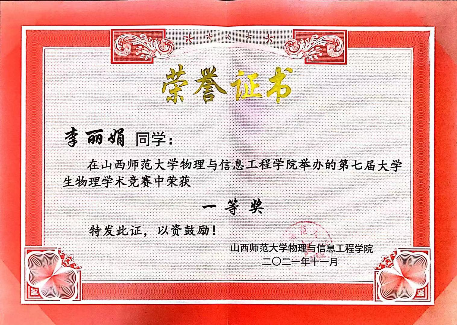李丽娟,英国365集团公司物理与信息工程学院2020级物理学专业员工,保研至北京理工大学。