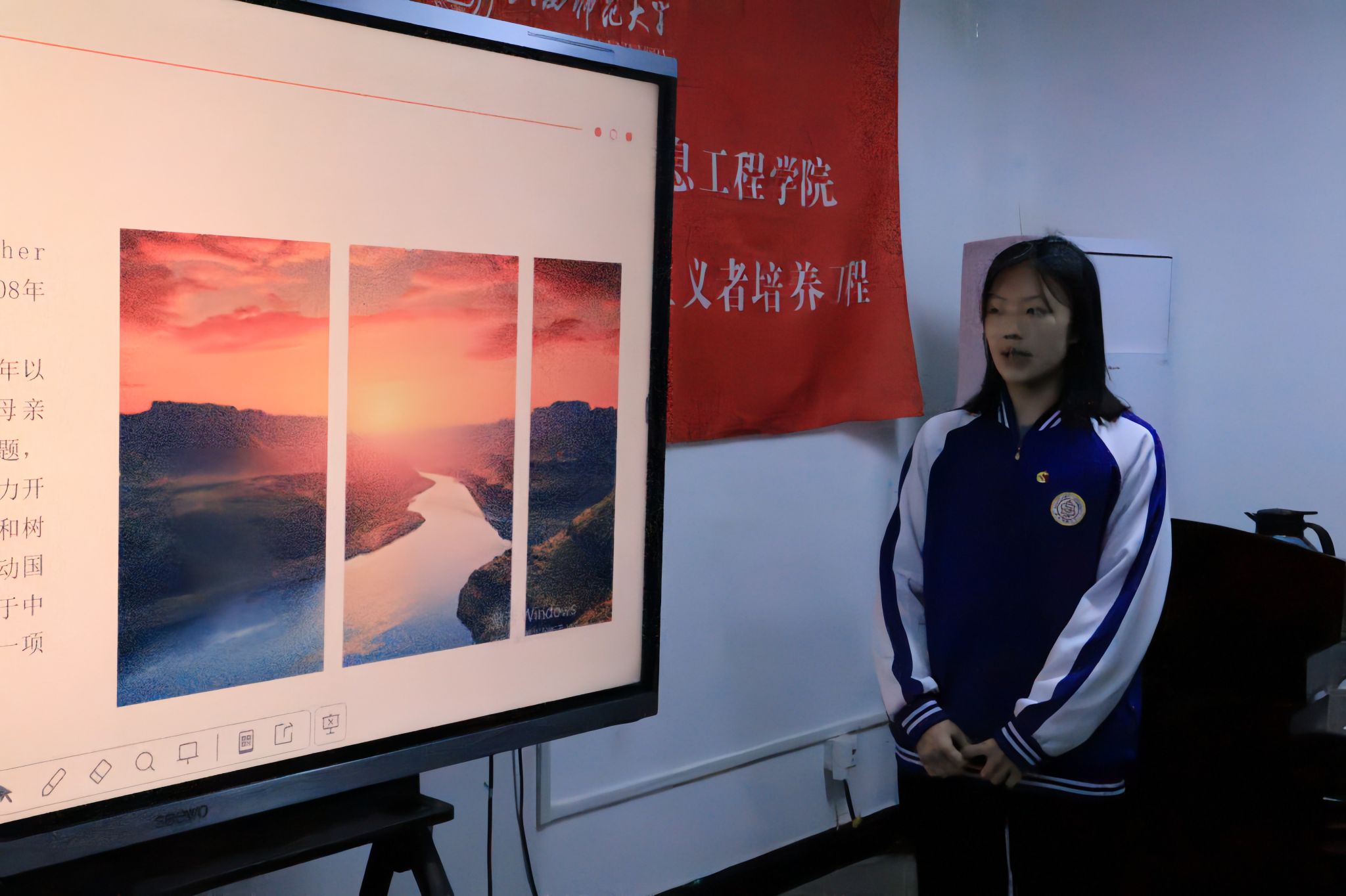 活动中,2301班团支书翟文祯带领参会人员了解了黄河的现状,观看了二十四节气的变化以及黄河的面貌,让青马学员直观地感受到黄河的变化。接着她为同学们讲述了《中华人民共和国黄河保护法》,呼吁全体成员一起保护黄河,共筑秀美山河。学员们纷纷表示,在今后的学习生活中要积极传播保护黄河的理念,让更多的人参与到保护黄河的行动中,保护好我们日夜流淌的生命之源。
