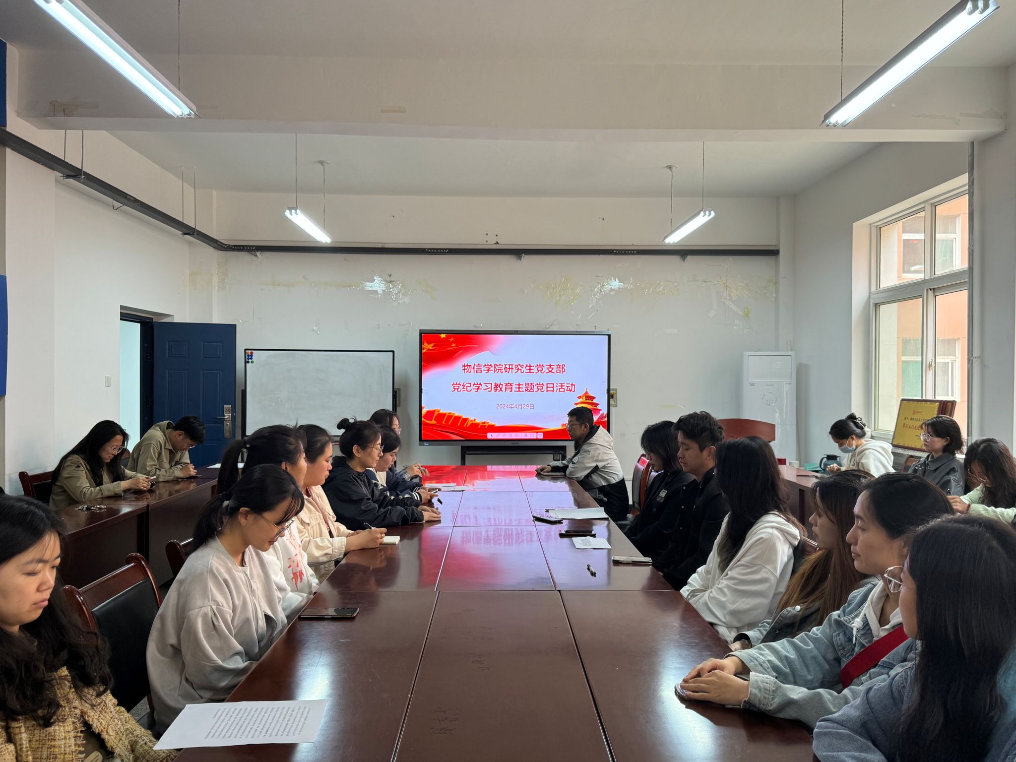 4月29日中午,公司研究生党支部在实验楼S202会议室开展了党纪学习教育主题党日活动,支部全体党员参加了活动,活动由支部书记颜志刚主持。