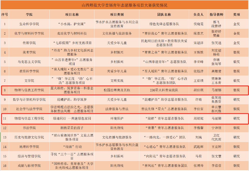 公司在学校首届青年志愿服务项目大赛中取得优异成绩