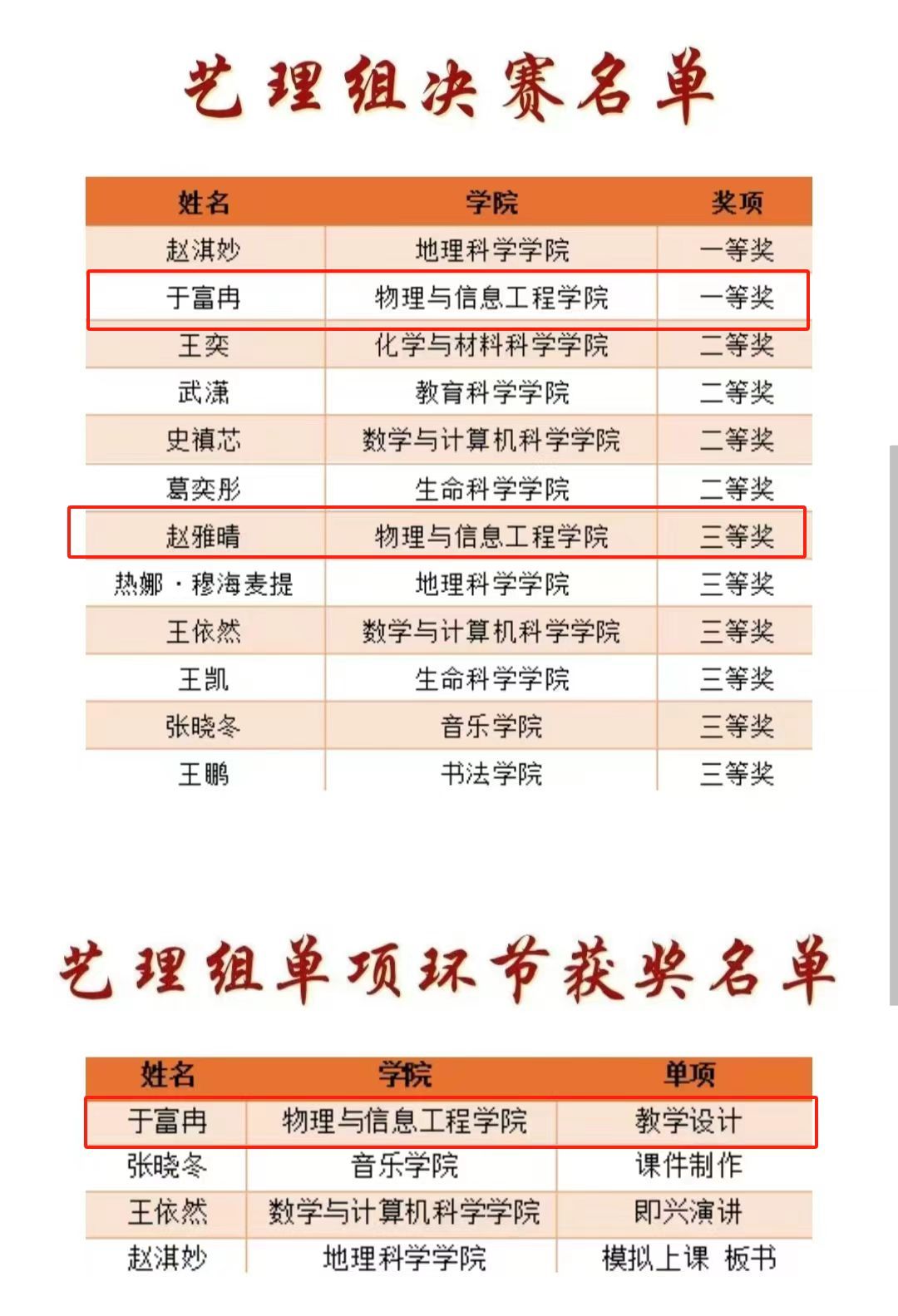 5月的校园,捷报频传。5月26日,校团委公布了2025年英国365集团公司未来教师素质大赛获奖名单,公司学子凭借扎实的专业功底与出色的教学素养,在赛场上绽放光芒,脱颖而出。于富冉、赵雅晴两位同学分别荣获艺理组一等奖和三等奖,其中于富冉同学还荣获教学设计单项奖。