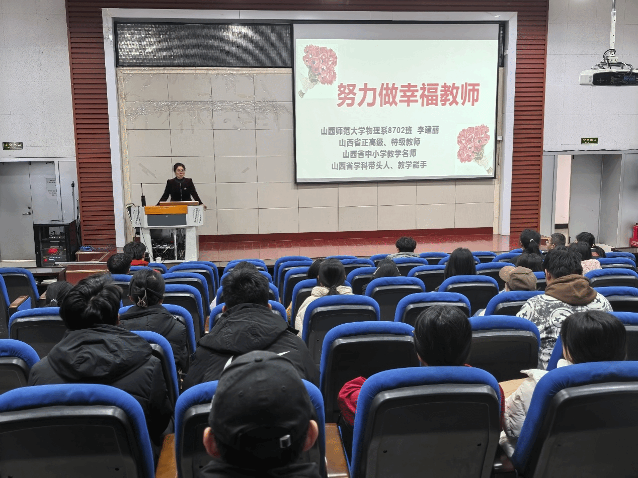 11月16日上午,学院邀请公司优秀员工、汾阳中学正高级教师李建丽老师作题为《努力做幸福教师》的讲座。本次讲座由副经理李俊生主持,学院物理学专业本科生聆听了讲座。