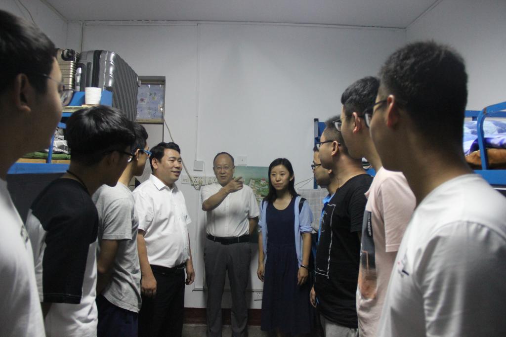 2018年9月8日晚7:00。院领导张进军、陈向波、王玮、张东海、侯俊华,院团委副书记岳文慧、专职辅导员马丽娜和全体新生辅导员一行前往华盛小区4号楼和5号楼,看望刚刚报到的新生,与同学们进行了亲切交流。
