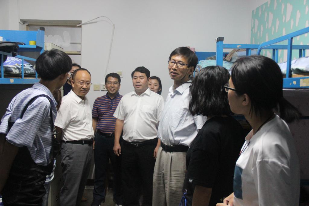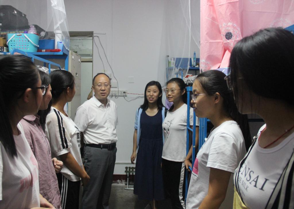 院领导和新生辅导员一行的到来受到了新生们的热烈欢迎,院领导亲切询问新生对宿舍环境、居住条件是否适应,并对员工的家庭情况做了详细的了解、对宿舍可能存在的安全隐患进行了逐一排查,叮嘱同学们一定要注意人身财产安全,增强安全意识,排除安全隐患。辅导员老师提醒新生,有困难一定要及时向老师反映,学院领导和老师会尽最大的努力去解决和完善。同学们刚刚离开家,走进大学开始新阶段的生活,难免会有不适应,大家要加强交流,互相帮助,尽快适应老员工活环境,并尽早对未来四年的老员工活做好规划。