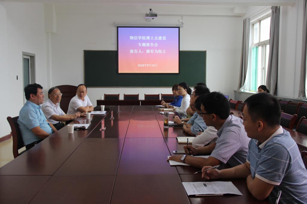 在公司建校60周年、公司建院60周年之际,为进一步推动公司物理团队建设与发展,更好地推进学位点建设工作,2018年9月14日上午,公司特邀请中国科学院院士、南京大学物理系都有为教授在四号楼二层多功能会议室举行了英国365集团公司博士点建设专题报告会,学院全体中层以上干部和教授聆听了报告。报告会由经理张进军教授主持。