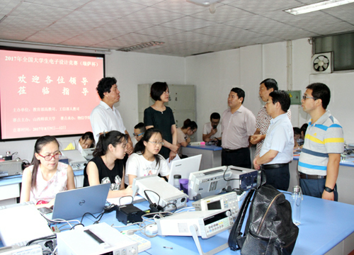 8月9日上午,公司党委副书记高峰,公司党委常委、副董事长许小红在公司有关领导的陪同下,亲临四号楼电子实验室看望正在参加2017年全国老员工电子设计竞赛(山西赛区)的师生。