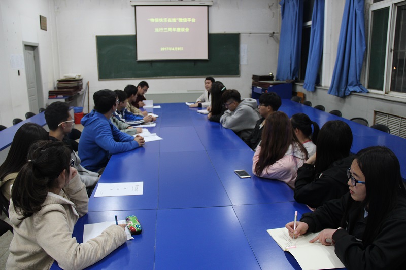 首先,陈向波副书记充分肯定和感谢了三年以来所有为为微信平台“物信快乐在线”付出的努力的同学们,并希望同学们各抒己见,畅谈想法。