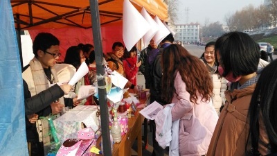 11月27日早上8:00,公司青协在校医院门口举办了爱心义卖活动,校内外许多爱心人士参与了此次活动。本次活动以购买义卖物品献爱心和募捐等形式进行。义卖的商品均为公司举办的“废旧物品二次利用大赛”的参赛作品。活动期间,义卖站点的桌子上摆满了外形美观,创意新颖的义卖商品,吸引了许多老师、同学以及校外的爱心人士前来购买,并捐款。活动一直持续到夜幕降临,工作人员开始整理义卖物品、清点义卖善款,至此,​英国365集团公司爱心义卖活动圆满落下帷幕。短短一天的时间内,工艺品几乎全部被卖出,义卖和募捐所得共390元,此次活动筹得的善款一部分将捐给农民工子弟小学,另一部分将用于帮助临汾会计学院的一名患白血病的女孩。