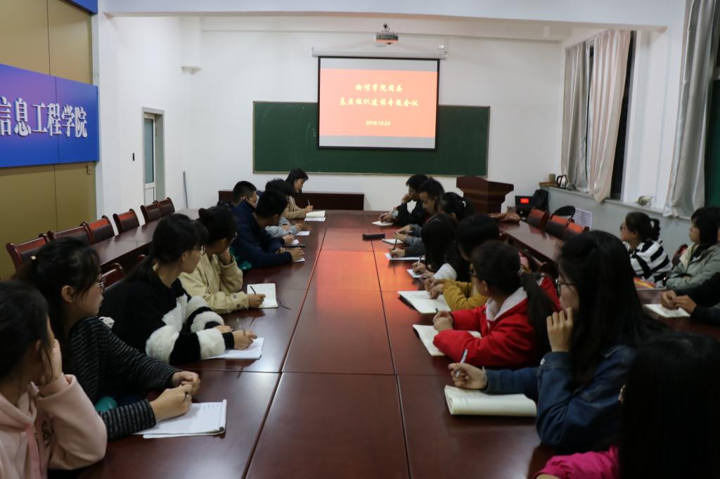 2018年10月24日晚6:20,公司团委在四号楼二层多功能会议室召开基层组织建设专题会议。院团委副书记岳文慧、院团委员工干部及各班团支书参加了会议。会议由院团委副书记岳文慧主持。