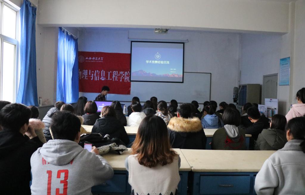 为了增进公司员工对物理学术竞赛的了解。公司员工会学习部于2018年12月2日下午2:30在04114教室举办了物理学术竞赛经验交流会。大一到大三部分员工参加了此次交流会,交流会由院员工会主席温佳主持。