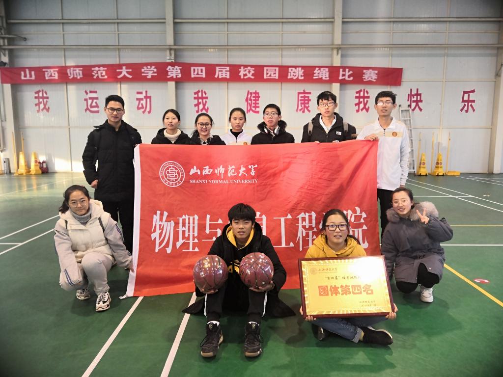 2018年12月8日第四届校园跳绳大赛在员工活动中心如期举行。在工作人员周密的组织与安排下,在跳绳队员为期半个月的努力与坚持下,公司最终获得了团体第四名的好成绩。