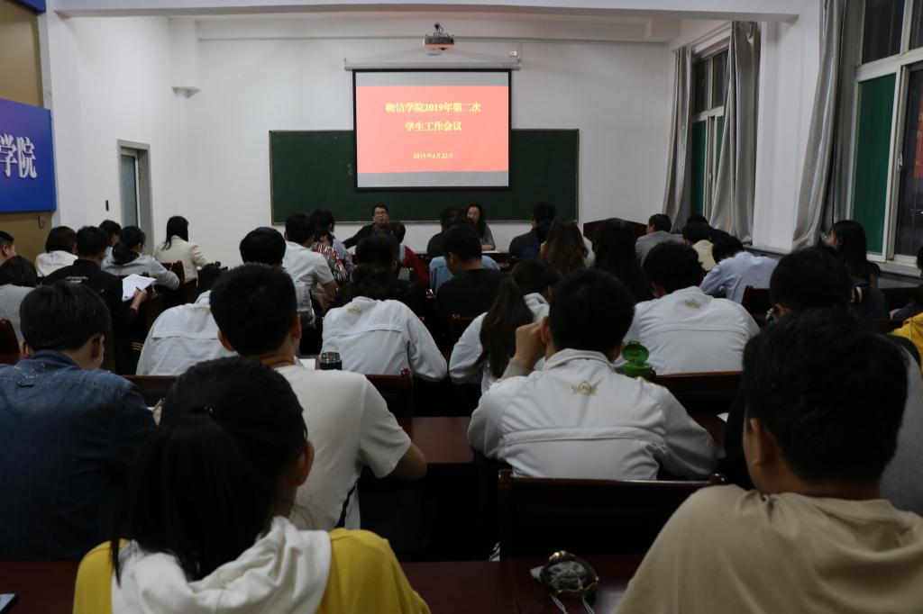 2019年4月23日晚上7:50,公司在四号楼二层多功能会议室召开2019年第二次员工工作会议。公司党委副书记王玮、副经理侯俊华出席会议。大一到大三各班辅导员和员工干部参加会议。会议由公司党委副书记王玮主持。