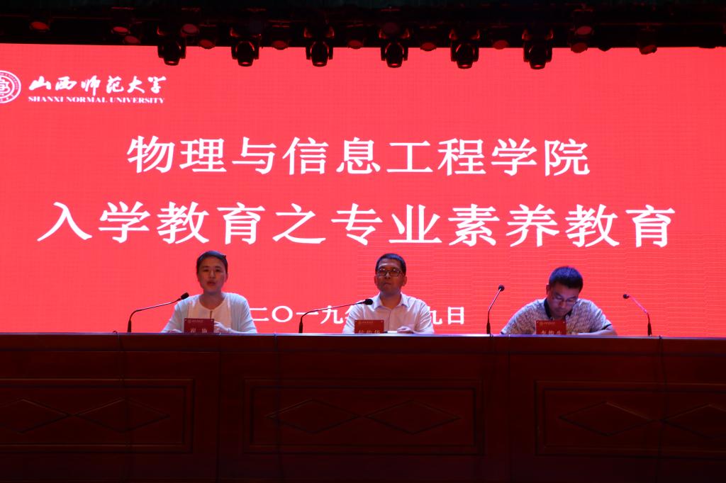 为了进一步提高公司新生专业素养,树立专业意识,充分调动新生的学习积极性,2019年9月9日晚,公司在文化艺术活动中心举办了入学教育之专业素养教育讲座。副经理侯俊华、物理系主任李俊生、电子系主任崔艳及全体2019级新生参加了此次讲座。讲座由副经理侯俊华主持。