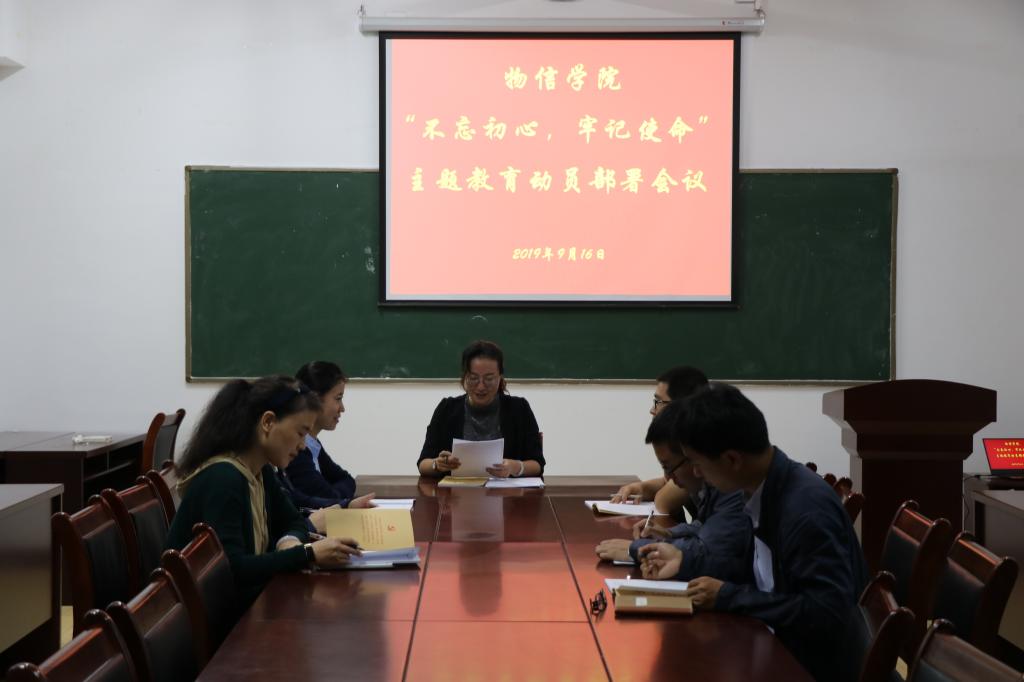会上,王玮副书记向与会人员传达了公司于9月12日召开的 “不忘初心、牢记使命”主题教育部署会议的相关内容和会议精神,重点对公司党委书记卫建国就开展好主题教育的四点意见和省委第11巡回指导组组长翁金明提出的六点意见进行了解读。并结合学校《关于开展“不忘初心、牢记使命”主题教育的实施方案》以及主题教育9月份重点工作任务对公司“不忘初心、牢记使命”主题教育进行了安排部署。她强调全体党员干部要提高政治站位,积极主动、严肃认真的投入此次主题教育。要把各项学习、各项讨论、各类调研等工作任务严格落到实处,以高度的责任感和使命感推动主题教育的高质量开展。