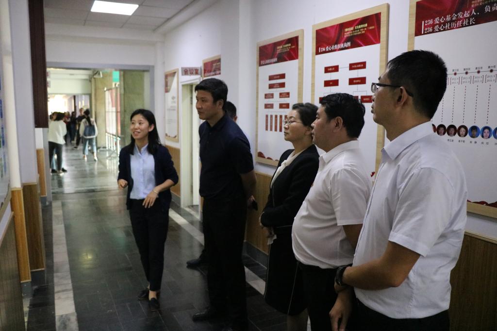 汇报会后,考核组一行还参观了236“爱的足迹”文化教育长廊,实地查看了“小萌龟”绿色共享电单车创业实践项目运营情况,召开了师生代表座谈会,并查阅了相关资料。