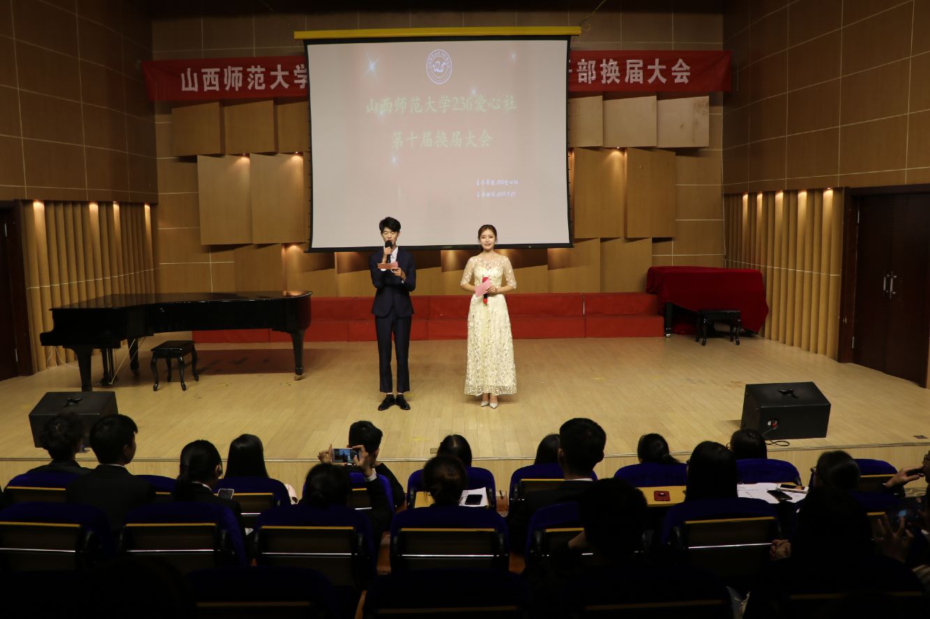 2019年9月27日晚7:30,236爱心社在10号楼音乐厅举办了第十届员工干部换届大会。第九届社团负责人、校社联和各兄弟社团代表以及两届各部门部长、大一部分同学参加了此次大会。大会由236爱心社文艺部部长师宝岚和部员卢豪杰主持。