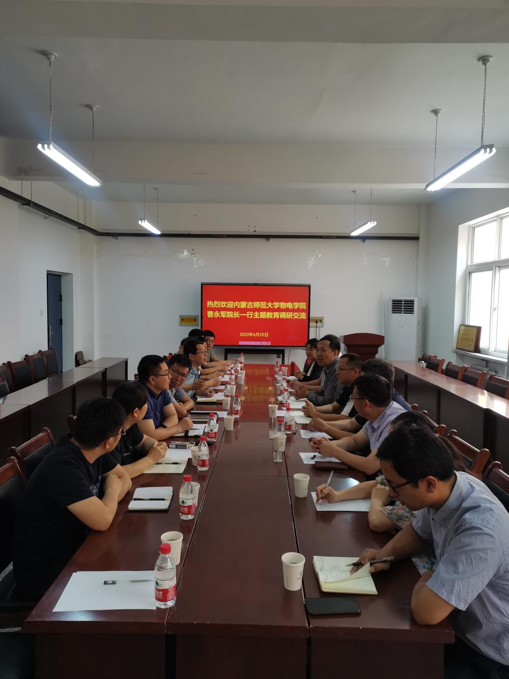 6月25日,内蒙古师范大学物理与电子信息学院曹永军经理一行来公司进行主题教育调研交流。副经理侯俊华、公司党委副书记颜志刚、副经理张东海以及学院中层干部参加了交流活动。