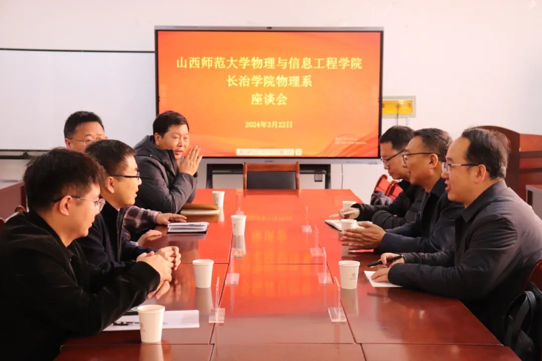 会议伊始,公司对长治学院物理系主任刘建伟等一行人的到来表示了热烈的欢迎。随后,双方简单介绍了学校基本情况,就物理学科的教学、科研以及员工培养等方面进行了深入的探讨和交流。长治学院刘建伟也对本院的学科发展给予了高度评价,并分享了他们在物理学科领域的经验和做法。李俊生表示希望与长治学院物理系加强合作,共同提升学科水平。