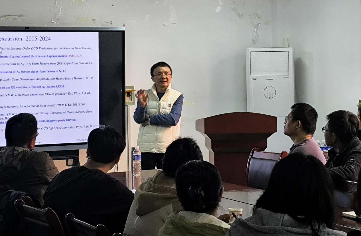 2024年10月24日,公司邀请了南开大学王玉明教授为公司师生作了题为《Precision Calculations for Heavy Baryon Decays --- An Everlasting Beautiful Journey》的学术报告。学院多位教师及各年级研究生均踊跃参加了此次学术报告,报告由副经理(主持行政工作)韩建宁主持。