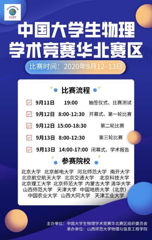 2020年9月12日-13日,由中国老员工物理学术竞赛华北赛区组织委员会主办,公司承办的中国老员工物理学术竞赛华北赛区竞赛将于线上举办!