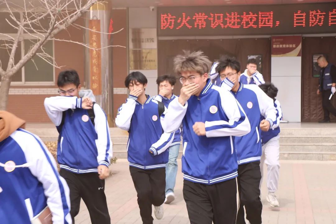 演练开始前,保卫部崔哲老师强调了火灾疏散常识和技巧。随着烟雾弹浓烟弥漫,“滴--滴--”两声哨声响起,消防应急疏散演练正式开始。学生在老师们的引导下,用手帕或衣袖捂住口鼻,弯腰低身,靠墙走,按照预定的疏散路线迅速、安全、有序地撤离到安全地带。