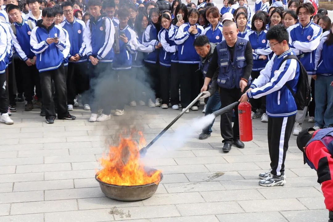 疏散完成后,崔哲老师对本次疏散演练作了点评,并为大家详细讲解并演示了灭火器、消毒面罩、灭火毯等消防设备的正确使用方法。全体师生认真学习、积极参与,亲身体验了灭火器的操作过程,进一步掌握了灭火技巧。整个演练过程既紧张激烈,又有条不紊。