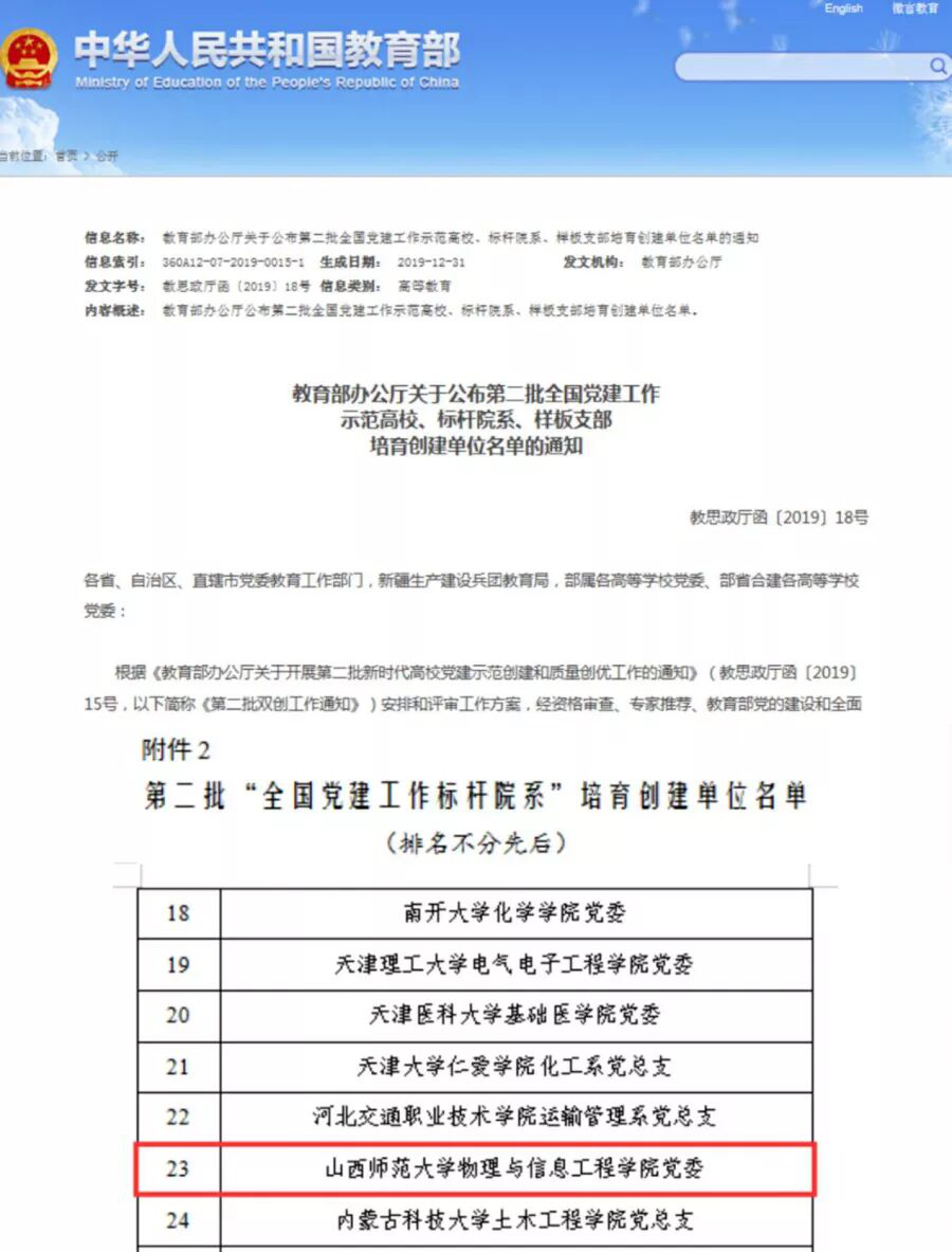 教育部第二批“全国党建工作标杆院系”