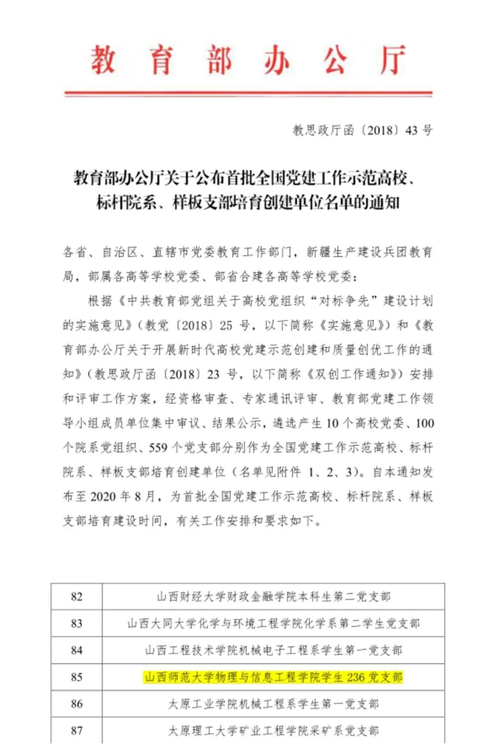 教育部首批“全国党建工作样板支部”