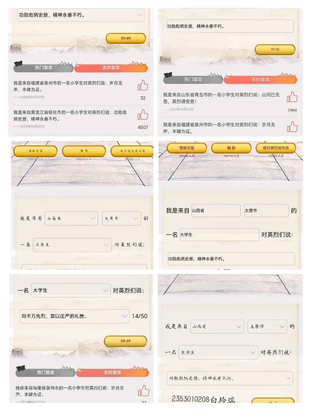 本次活动,同学们用三种不同形式寄托了对烈士的哀思,增强了历史使命感和责任感,激励同学们传承红色基因,凝聚奋进力量。(文/崔志慧 摄/弓文楠)