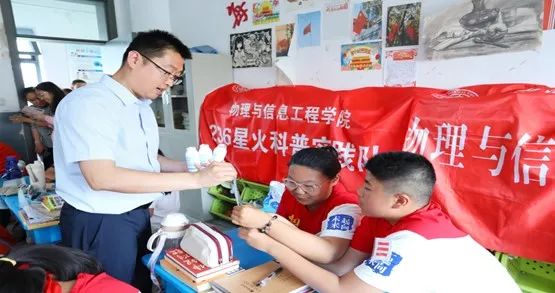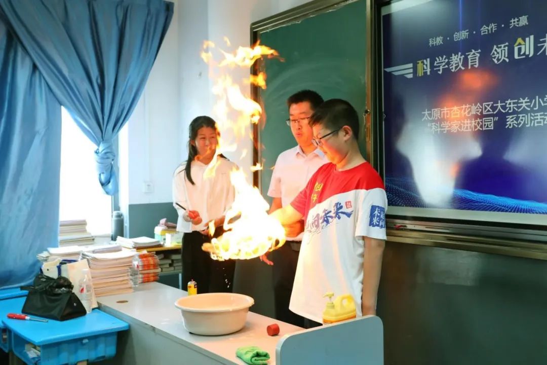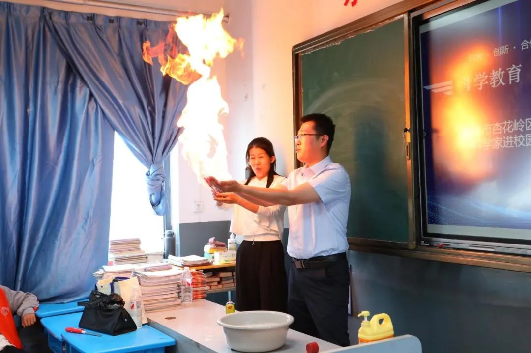 活动上,张会生老师和236星火科普实践队为两所学校的师生们带来了掌上火焰、碘钟实验、伯努利气球环实验三个趣味实验,带领孩子们在欢乐中学习科学知识。